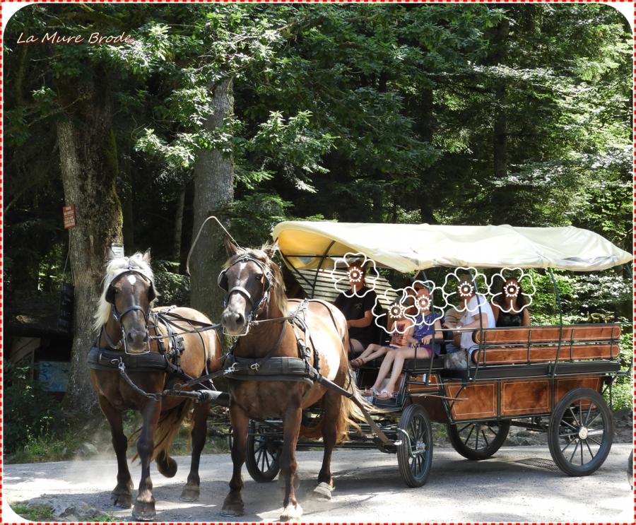 La calèche qui emmène les promeneurs de la grande cascade à la petite cascade